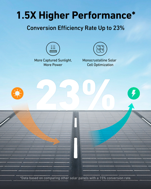 Монокристаллические солнечные элементы и оптимизированная поверхность, улавливающая солнечный свет, обеспечивают эффективность преобразования до 23% .- Прекрасная портативность