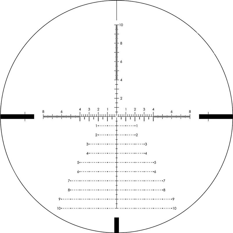 - Гравированная лазером сетка EBR-7C находится в первой фокальной плоскости, а это значит, что она будет пропорционально масштабироваться с изменением кратности, и ее угловые размеры всегда будут верны.
