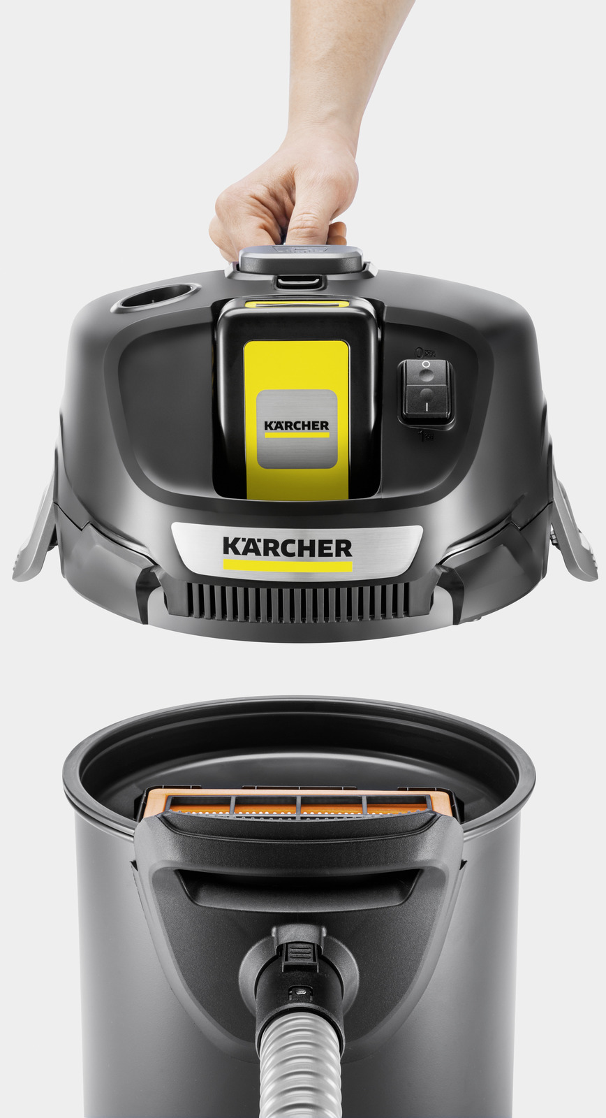 Удаление золы, крупного мусора или мелкой пыли: с любой из этих задач быстро и надежно справится наш мощный аккумуляторный пылесос для сбора золы AD 2 Battery. Гибкий металлический всасывающий шланг в полимерной оболочке, огнестойкий мусоросборник объемом 14 л и надежный плоский складчатый фильтр, с предварительным металлическим фильтром для крупного мусора, гарантируют максимально безопасную уборку без распространения пыли. Стабильно высокая сила всасывания обеспечивается инновационной функцией ReBoost, позволяющей нажатием кнопки очищать фильтр от золы и пыли, а высокая производительность и длительная непрерывная работа - мощным сменным аккумулятором Kärcher Battery Power 18 В с технологией Real Time для отображения остаточного времени работы на встроенном ЖК-дисплее. Изогнутая трубка на рукоятке всасывающего шланга, облегчающая очистку труднодоступных мест, после выполнения работы вставляется в специальное углубление на корпусе компактного пылесоса для его аккуратного хранения.