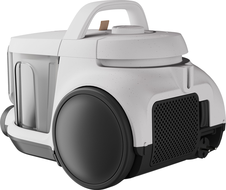 Модель оборудована фильтром HEPA 12, который задерживает до 99,5 % микрочастиц пыли и аллергенов. Телескопическая металлическая трубка обеспечивает удобную регулировку длины. Пылесос выполнен в бело-сером цвете (Soft White), отличается лёгкостью, маневренностью и простотой очистки контейнера.