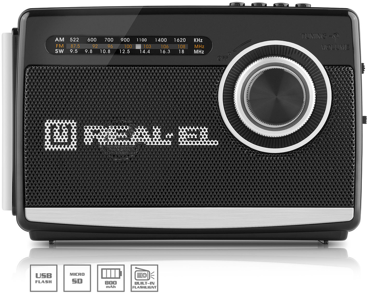 Портативный радиоприемник Real-El X-510 - отличный попутчик для поездок, путешествий и прогулок, а так же прекрасный компаньон дома и на работе. Помимо того, что Вы можете взять с собой любимые FM-радиостанции куда угодно, в модель приемника добавлены современные опции: воспроизведение с USB-flash и microSD card носителей, встроенный фонарик. Встроенный литий-ионный аккумулятор обеспечит весьма продолжительное время работы радиоприемника. Слушайте свой любимый аудио контент вместе с REAL-EL X-510 и наслаждайтесь кристально чистым звучанием.