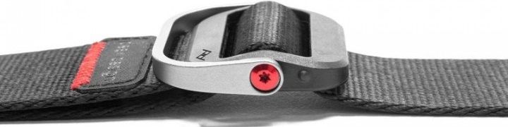 Инновационная система настройки дает возможность мгновенно изменять длину ремня 95 см до 146 см. Дизайн предполагает ношение камеры как на шее, так и через плечо. Две стороны ремня имеют разные свойства: одна сторона гладкая, чтобы мобильно привести камеру в рабочее положение, а другая с нанесенными силиконовыми полосками, которые предотвращают скольжение при использовании ремня на шее или плече. Качественный нейлон армирован специальным волокном и может выдержать нагрузку до 90 кг. Площадка и крепежные элементы выполнены из анодированного алюминия. В поставку включен чехол и дополнительный комплект карабинов.