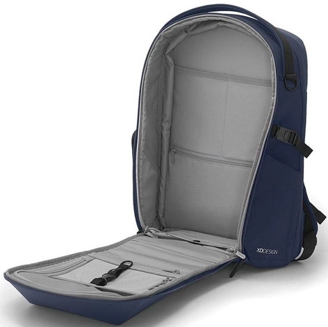 Рюкзак XD Design Bobby Bizz Backpack 18-25 л Navy P705.935 имеет основное отделение с расширяющейся секцией, открывающейся на 180 градусов, внутренние сетчатые карманы, встроенный технический карман и съемный ремешок для ключей. Задний карман защищен водонепроницаемой молнией и имеет мягкий карман для ноутбука или MacBook с диагональю до 16 дюймов.