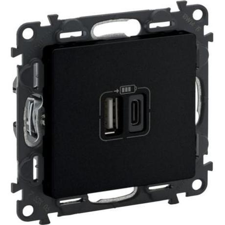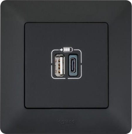 Зарядное устройство Legrand Valena Life — это стильная розетка с двумя портами для зарядки, оснащенная разъемами USB Type-A и Type-C. Выполненная в матовом черном цвете, эта модель обеспечивает выходную мощность до 15 Вт и подходит для быстрой зарядки мобильных устройств.