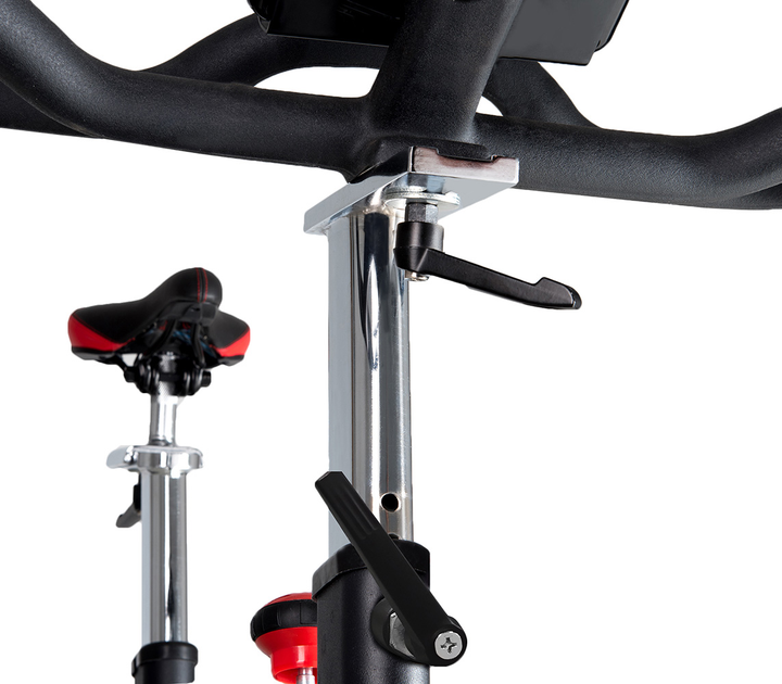 Сайкл-тренажер TOORX Indoor Cycle SRX 500 из премиальной линейки Chrono Line итальянского производителя Garlando S.p.A. предназначен для интенсивной кардиотренировки в домашних условиях. Тренажер оснащен новейшей магнитной тормозной системой, которая непосредственно воздействует на маховик, что позволяет чрезвычайно плавно вращать педали на самых низких уровнях нагрузки, а также современный компьютер с необходимым набором функций. Тяжелый 24-килограммовый маховик вместе с ременным приводом обеспечивают бесшумность работы тренажера и достаточную нагрузку даже для подготовленных спортсменов. Спин байк рассчитан на вес до 150 кг и подойдет для пользователей ростом до 2 м. Нагрудный кардиодатчик для беспроводного измерения пульса будет уместным во время тренировки по одной из четырех пульсозависимых программ. Спортивное сиденье и руль регулируются по высоте и в горизонтальной плоскости, обеспечивая индивидуальную настройку. Транспортировочные ролики в передней части тренажера позволяют свободно перемещать его по комнате. Консоль тренажера имеет держатель для смартфона/планшета и поддерживает Bluetooth для интеграции с популярными приложениями iConsole+ Training, Kinomap и Zwift, которые превратят монотонную тренировку в увлекательный процесс.