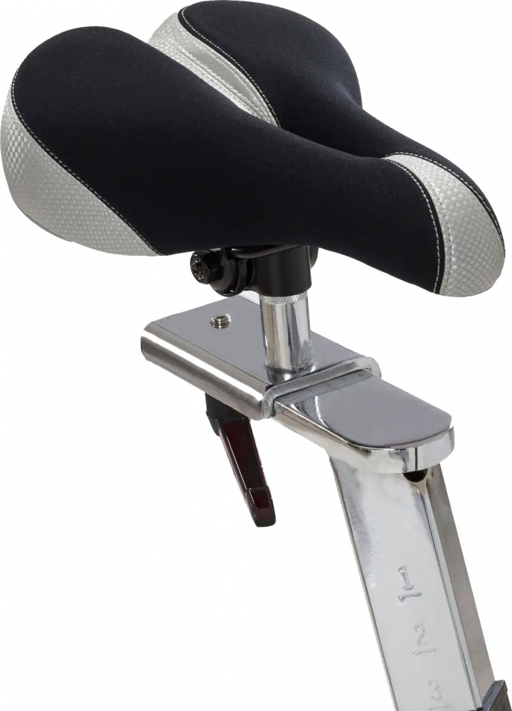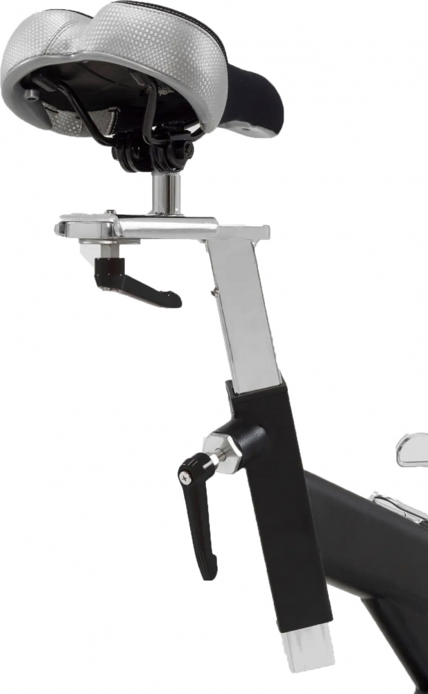Тяжелый 24-килограммовый маховик вместе с ременным приводом обеспечивают бесшумность работы тренажера и достаточную нагрузку даже для подготовленных спортсменов. Спин байк рассчитан на вес до 140 кг и подойдет для пользователей ростом до 2 м. Нагрудный кардиодатчик для беспроводного измерения пульса будет кстати во время тренировки для контроля частоты сердечных сокращений. Спортивное сиденье и руль регулируются по высоте и в горизонтальной плоскости, обеспечивая индивидуальную настройку. Транспортировочные ролики в передней части тренажера позволяют свободно перемещать его по комнате.