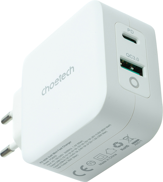 2-портовое зарядное устройство Choetech GaN (USB Type-A и Type-C) PD обеспечивает наилучшую производительность зарядки благодаря технологии GaN (нитрид галлия). Это зарядное устройство мощностью 65 Вт повышает эффективность зарядки до более чем 90%. Поддерживаются стандарты быстрой зарядки PD3.0 и QC3.0.