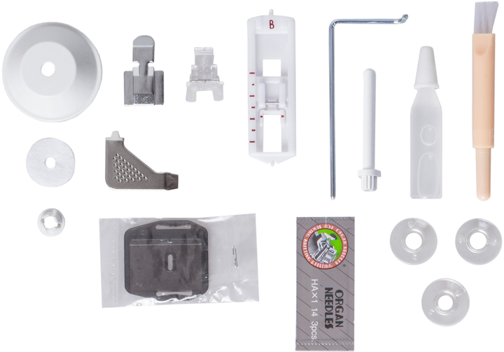 -       Характеристики      Общие характеристикиНазначениеКоличество швейных операций26Выполняемые строчкиОверлочная , Прямая , Зигзаг , Эластичная для трикотажа , Для подшивания потайным швом , ДекоративнаяМаксимальная длина стежка4 ммВариант выполнение петлиМаксимальная ширина стежка5 ммТип челнокаКоличество петель1Жёсткий чехолНетЛапки в комплектеДля выметывания петли , Для молнииКомплектацияКисточка-вспарыватель , Швейная машина , Направляющий для краев выстегивания , Пластинка для стержня катушки , Дополнительный держатель для катушки , L-образная отвертка , Упаковка игл (3 шт) , Шпульки (3 шт) , ИнструкцияГарантияГарантия: 12 месяцевОсобенностиПодсветка рабочей зоныКлассификацияФункцииФункциональные возможностиШитье двойной иглой , Пришивание пуговиц , Пришивание молний , РеверсГабариты, Цвет, ВесВес5.6 кгЦветБелыйШирина440 ммВысота340 ммГлубина210 ммДисплейДисплей- * Характеристики и комплектация товара могут изменяться производителем без уведомления.