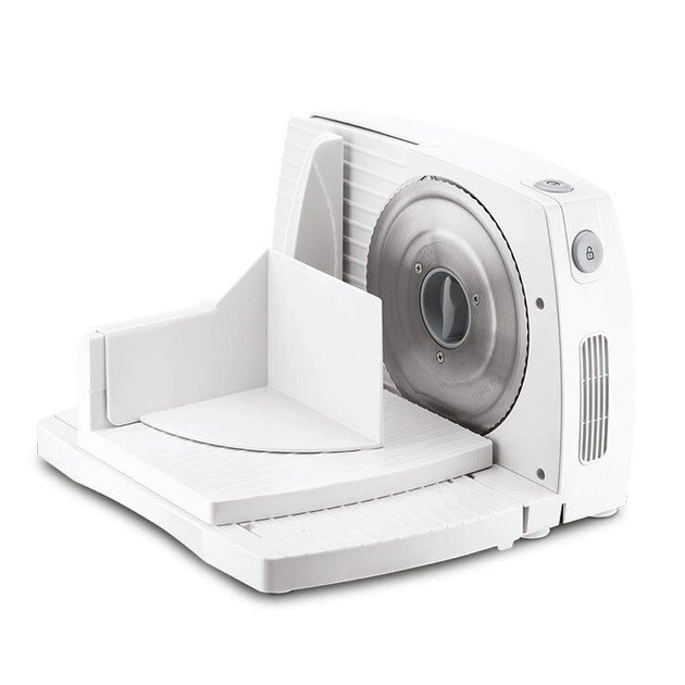 - Характеристики Общие характеристикиБлокировка случайного включенияЕстьСфера использованияДиапазон толщины нарезки0-15 ммДиаметр ножа17 смКомплект поставкиЛомтерезка , ДокументацияРегулировка скоростиМощность150 ВтГарантияГарантия: 24 месяца от производителяКлассификацияТипВидПолуавтоматическаяМатериалыМатериал корпусаДополнительноДополнительные характеристикиПротивоскользящие ножки , Блокировка лезвия , Плавная регулировка толщины нарезки , Нож из нержавеющей сталиГабариты, Цвет, ВесШирина106 ммВысота215 ммГлубина360 ммЦветБелый