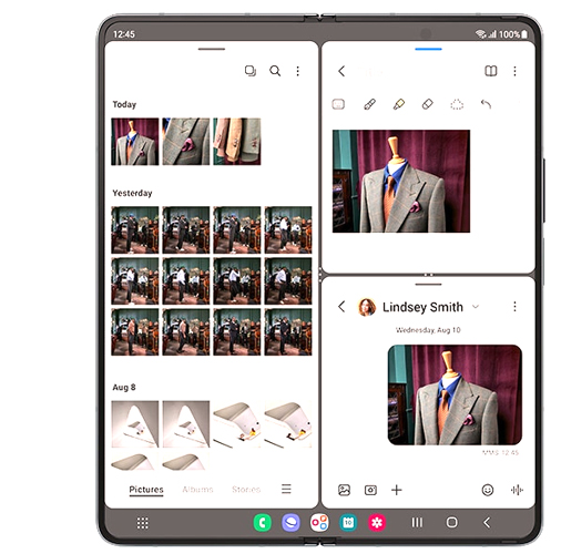 6.2-дюймовый внешний экран создает множество возможностей для работы одной рукой. На 7.6-дюймовом главном экране обеими руками можно производить еще больше операций. Чтобы освободить руки для выполнения других задач, просто положите смартфон, установив его под нужным углом.