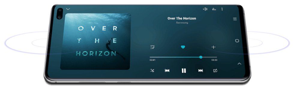 Смартфон Galaxy S10 способен подарить вам ощущение, будто события, которые разворачиваются на экране гаджета происходят вокруг вас. Реализованная в нем технология объемного звучания Dolby Atmos со стереодинамиками AKG обеспечивают передачу качественного стереозвучания.