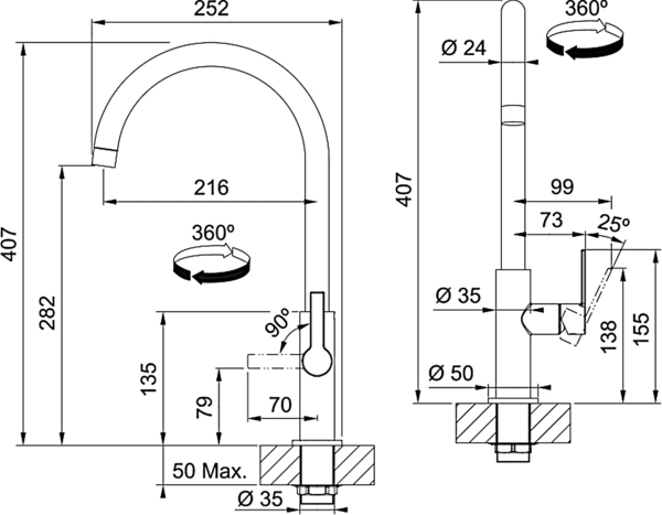 -       Описание      Эргономичная конструкцияКухонный смеситель с поворотным невытяжным изливом и боковым рычагом управления. Рычаг открывается вперед на угол 90°, поэтому можно осуществлять монтаж вплотную к стене. Поворот излива на 360Угол поворота излива составляет 360°, поэтому водяной поток достигает большей площади мойки, а также такой смеситель можно монтировать в островные кухни. АэраторАэратор насыщает водяной поток воздухом, благодаря чему лучше работают моющие средства, а также экономится вода. - * Характеристики и комплектация товара могут изменяться производителем без уведомления.
