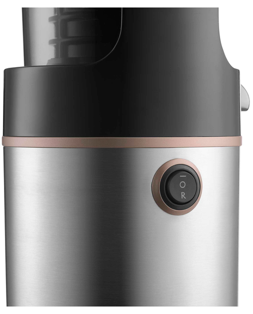 - Не содержит бисфенола А, шнек из ПММА и чаша и желоб для отжима сока с PCTG, I-0-R 3-ступенчатый переключатель для легкого управления с функцией реверса для легкой очистки;