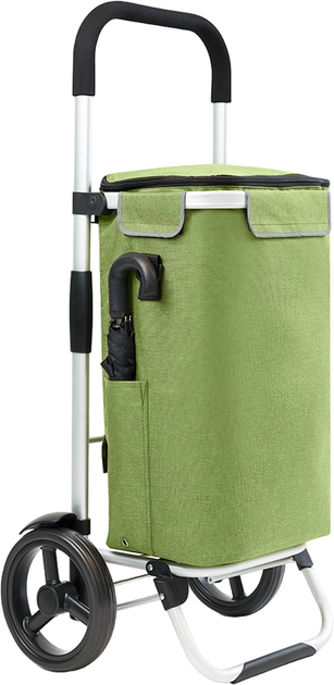 Сумка-тележка Shopping Cruiser Allround Green (650070) имеет просторное основное отделение и термокарман. Данная модель универсальна и многофункциональна. Сумка для покупок крепится к алюминиевой раме в трех точках с помощью застежек-липучек. При необходимости она снимается с рамы и имеет возможность носить на плече. Максимальная нагрузка для сумки на тележке двадцать пять килограммов или как сумка для переноски десять килограммов. Световозвращатели размещены с трех сторон на сумке. Все, что вам нужно сделать для начала эксплуатации, это просто прикрепить сумку с помощью застежки-липучки к тележке, нажать на колеса, установить их и добавить брызговики.
