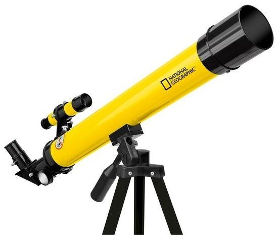 Данная модель рекомендуется детям, начиная с 6-летнего возраста, и соответствует запросам юного астронома. Телескоп с ручным управлением National Geographic 50/600 Refractor AZ Yellow оснащён оптикой достаточной для наблюдения кратеров на Луне диаметром 8 км, звёзд слабого свечения (до 10.5 звездных величин), Сатурна, Урана и Нептуна в виде звезд, полярных шапок Марса. Даже туманности, находящиеся на расстоянии до 1500 световых лет станут доступны глазу ребёнка в виде светлых концентрированных пятен. Также телескоп подходит и для ландшафтных наблюдений, наблюдений за городскими достопримечательностями.