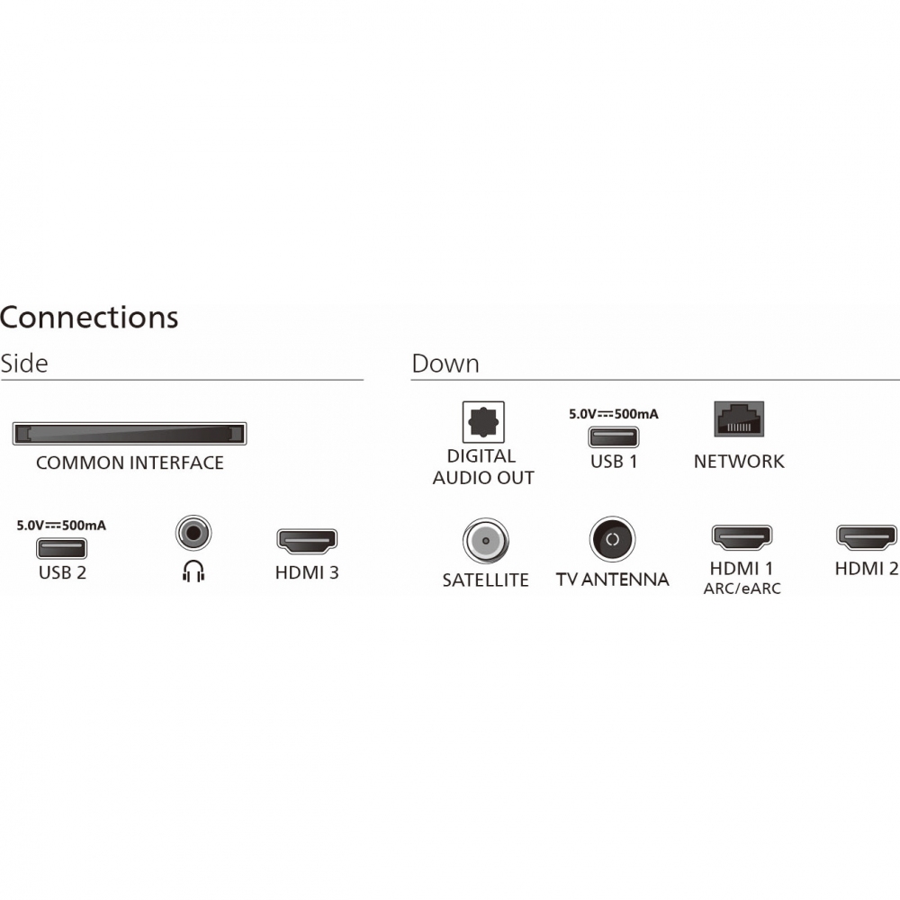 4 x HDMI , 1 x Антенный вход (спутниковый) , 1 x Оптический цифровой аудиовыход , 2 x USB , 1 x Цифровой аудиовыход , 1 x Гнездо для наушников , 1 x Cлот расширения (CI) , 1 x Антенный вход RF