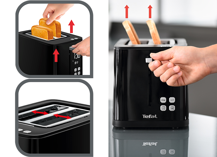 Отделение для тостов в модели с переменной шириной и автоматическим центрированием хлеба. Продумано все, чтобы лишить вас хлопот с извлечением тостов.