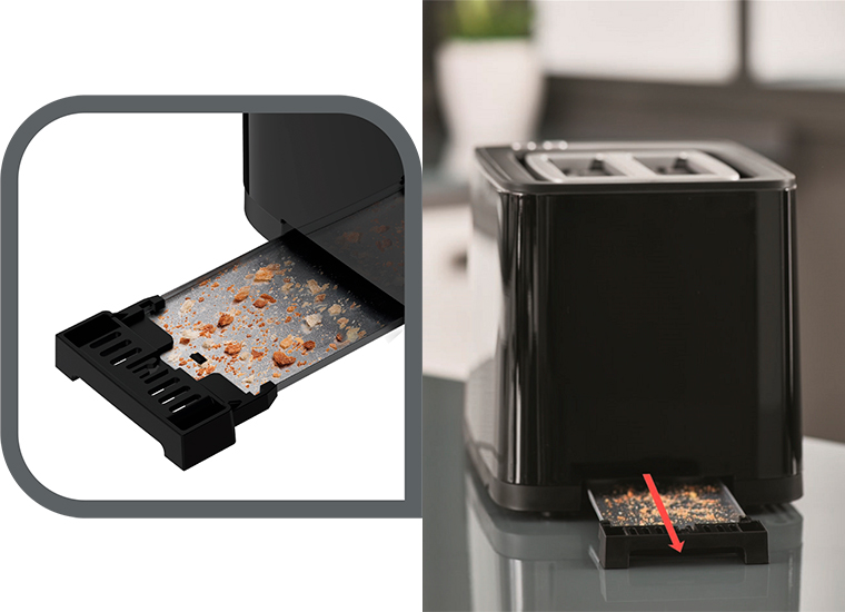 Чтобы застрявшие крошки не испортили вам настроение, в тостере есть съемный поддон. Теперь очистить отделение для тостов стало еще проще.