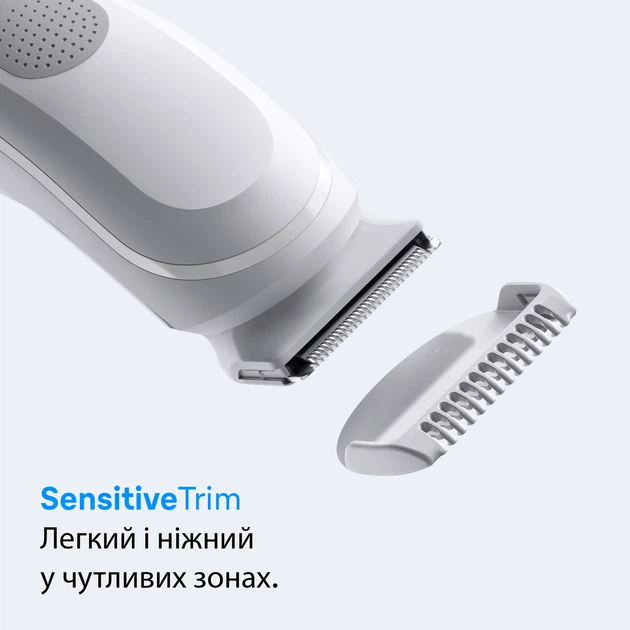 Благодаря съемной насадке Sensitive Comb ваша кожа надежно защищена – лезвия не контактируют непосредственно с кожей, что снижает риск раздражений и делает процесс абсолютно безопасным. Этот триммер идеально подходит для зоны подмышек, груди, живота и интимной области.