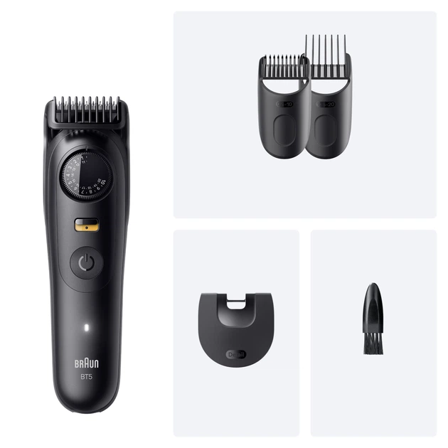 Триммер для бороды Braun Series 5 BT 5520. Технология AutoSense. Функция PrecisionLock. Триммер оснащен 40 настройками длины с шагом 0,5 мм. Питание: от Li-Ion аккумулятора. Время работы от аккумулятора: 120 мин. Время зарядки: 90 мин. Индикатор низкого заряда. Самозатачивающиеся ножи с неограниченным сроком службы. Корпус триммера на 100% водонепроницаем.