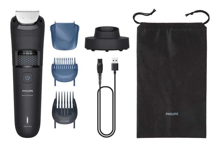 PHILIPS BT5780/15 — аккумуляторный триммер для бороды серии Beard Trimmer 5000 с системой сбора волос, позволяющей подстригать бороду аккуратно и с минимальным количеством мусора. Оснащен самозатачивающимися металлическими лезвиями и технологией BeardSense, автоматически регулирующей мощность в зависимости от густоты бороды. Триммер имеет 40 настроек длины от 0,4 до 20 мм с шагом 0,2 мм для точного моделирования бороды. Встроенный литий-ионный аккумулятор обеспечивает до 100 минут автономной работы и полностью заряжается примерно за 1 час. Подходит для сухого и влажного использования и не требует смазки лезвий.