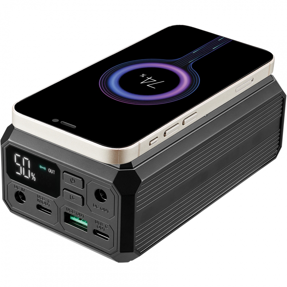 Она оснащена четырьмя выходами для питания ваших гаджетов и поддерживает функцию беспроводной зарядки мощностью до 10 Вт. Набор интерфейсов включает:- Порт USB Type-C с максимальной мощностью 100 Вт — идеально для современных ноутбуков.