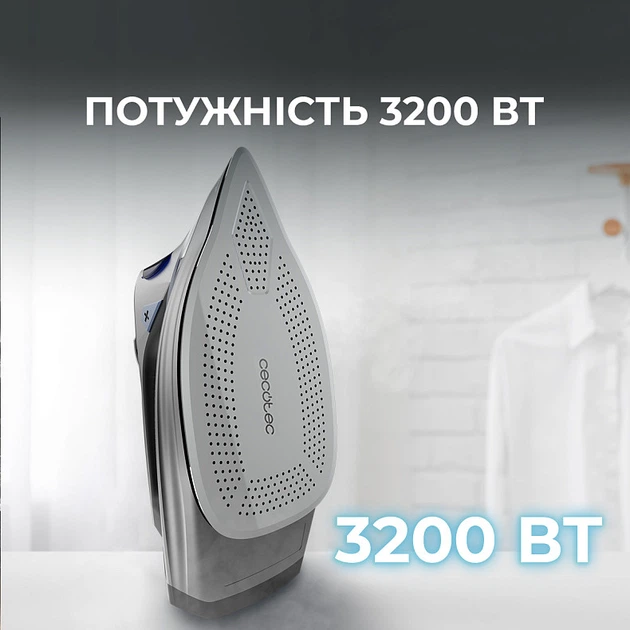 Утюг Cecotec имеет высокую мощность 3200 Вт для быстрой и эффективной глажки практически любой вашей одежды быстро и легко.