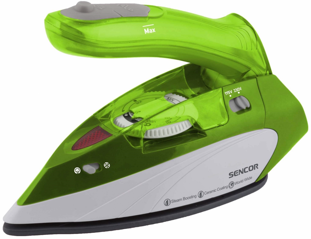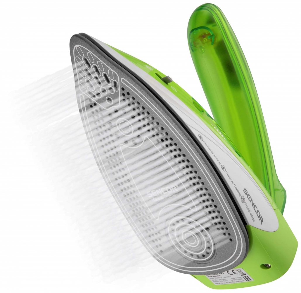 Утюг SENCOR SSI 1050GR с функцией вертикального отпаривания и парового удара для разглаживания самых сложных складок. Керамическая поверхность подошвы хорошо скользит по ткани.
