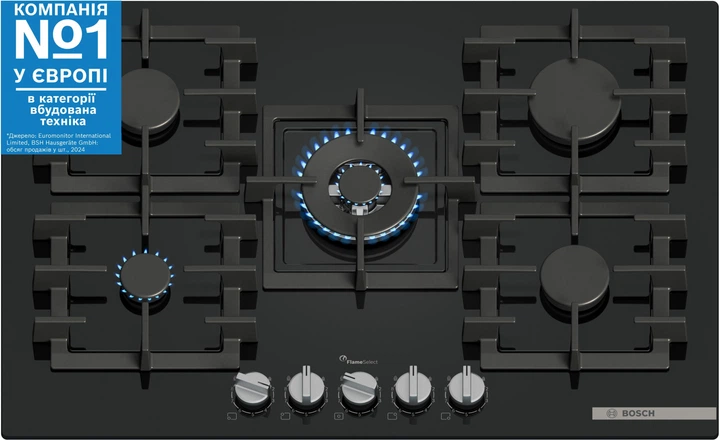 Газовая варочная поверхность Bosch Serie 6 PPQ7A6I45 – это мощное пятиконфорочное устройство с премиальным дизайном и расширенным функционалом для требовательных пользователей. Ее элегантная черная поверхность из закаленного стекла сочетается с чугунными отдельными решетками, которые не только обеспечивают надежность, но и легко снимаются для мытья, в частности, в посудомоечной машине.