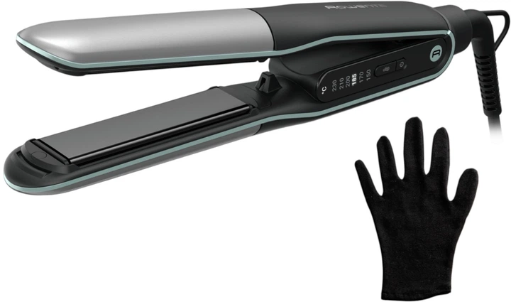 Стайлер оснащён длинным поворотным шнуром, функцией автоматического отключения и блокировкой пластин для удобного хранения. В комплекте есть термозащитная перчатка.