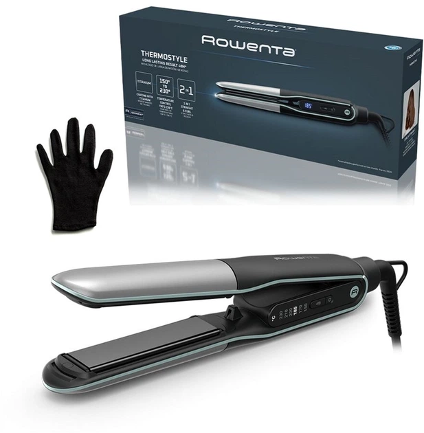 Rowenta Thermostyle SF7120E0 — универсальный стайлер «2 в 1», который позволяет как выпрямлять волосы, так и создавать локоны благодаря округлому корпусу. Пластины имеют титановое покрытие, обеспечивающее равномерное нагревание и лёгкое скольжение по волосам без сильного трения.