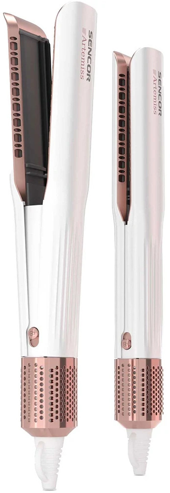 Выпрямитель SENCOR SHI 9100RS представляет собой идеальное сочетание передовых технологий и изысканного дизайна, что делает его незаменимым инструментом для создания профессиональных причесок в домашних условиях. Этот утюжок отличается не только своей функциональностью, но и элегантным внешним видом, выполненным в белом и золотистом цветах.