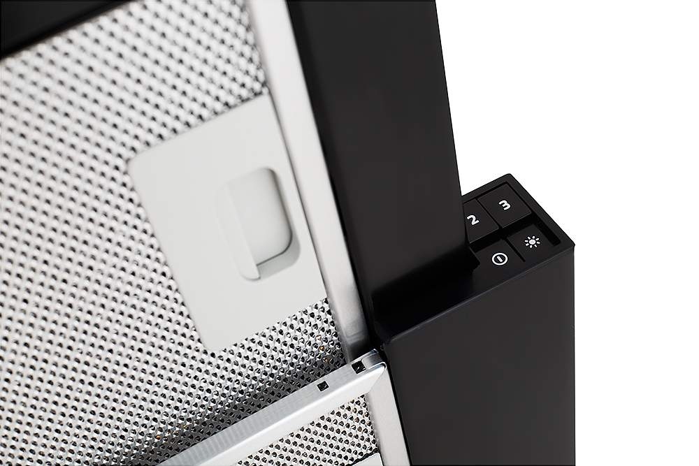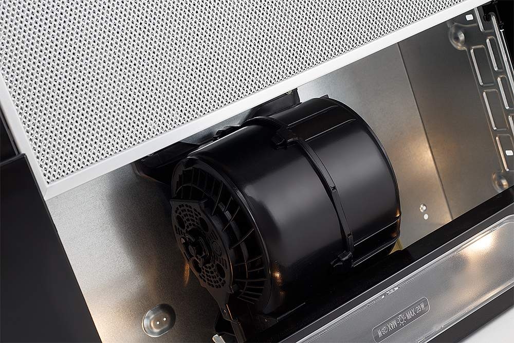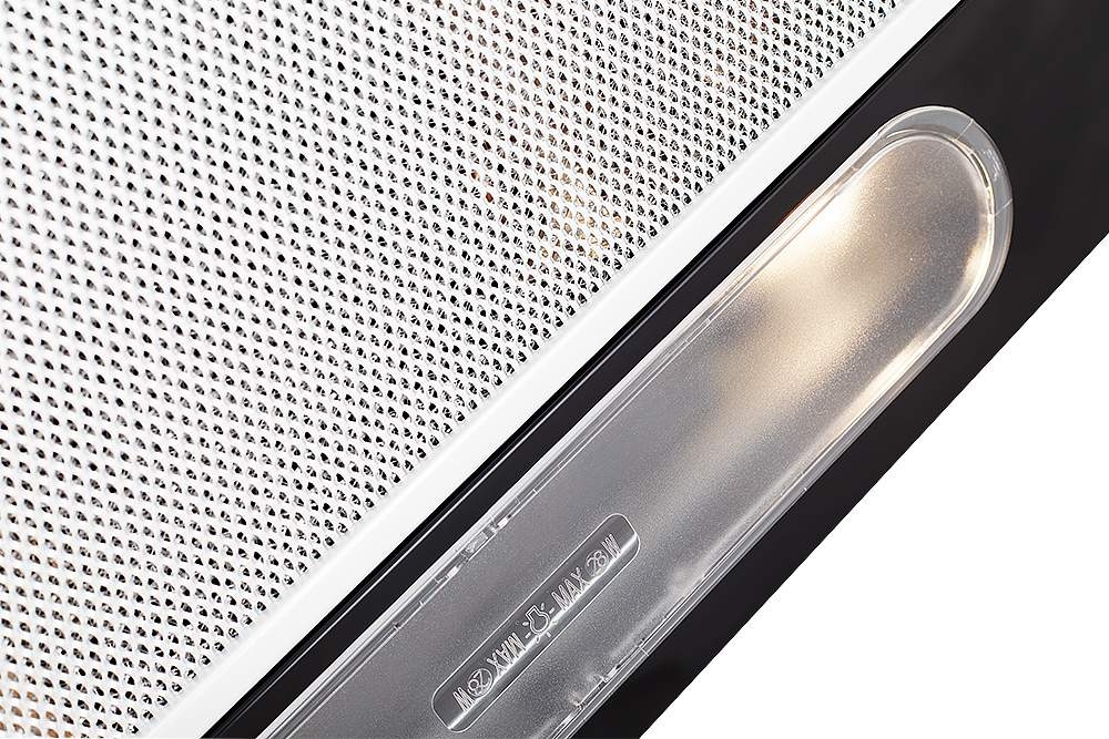 Благодаря мощному производительному мотору вытяжка не позволит загрязненному воздуху из кухни распространиться по квартире. Вытяжка также эффективно удаляет из воздуха микрочастицы копоти и жира, не позволяя им оседать на мебели и стенах в виде жирового налета. Козырек, которым оснащена вытяжка, позволяет полностью захватывать воздух над варочной поверхностью. Вытяжка имеет три рабочие скорости. Мощная система освещения делает возможным обойтись без основного света в вечернее время. Модель управляется механическими кнопками, которые расположены сбоку на фронтальной панели.