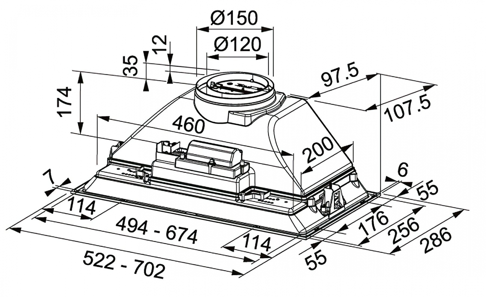 Эта вытяжка отлично подойдет людям, которые не желают устанавливать вытяжку к стене либо не имеют для этого свободного пространства. Inca Smart FBI 525 GR полностью встраивается в шкафчик вместо днища. Немаловажным преимуществом этой вытяжки есть то, что ее ширина совпадает с большинством кухонных шкафчиков.
