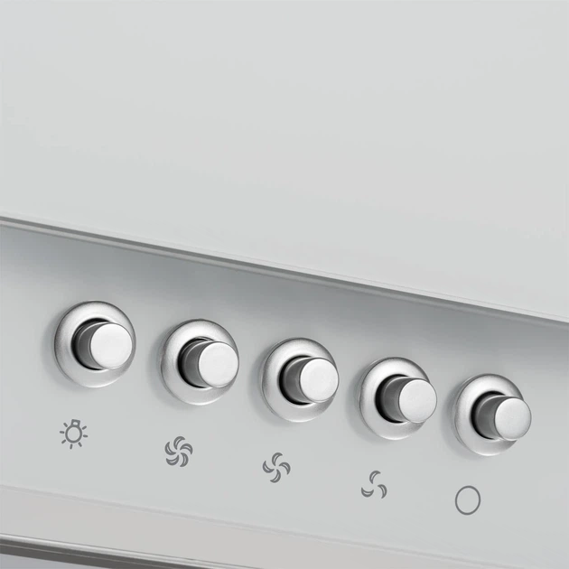Передняя панель из закаленного стекла белого цвета и корпус из окрашенной стали придают вытяжке стильный и современный вид.