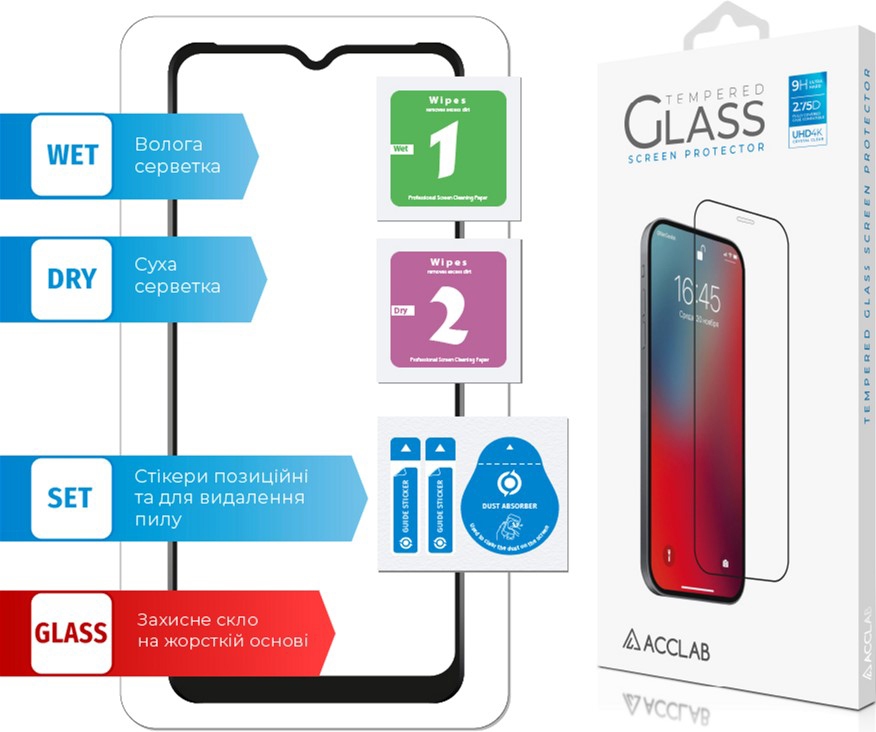 • Клеевой слой нанесён по всему стеклу. Благодаря этому обеспечивает надежную и сильную фиксацию всего стекла, а не только его краев. При необходимости такое стекло можно легко снять, без риска повредить экран или его покрытие.