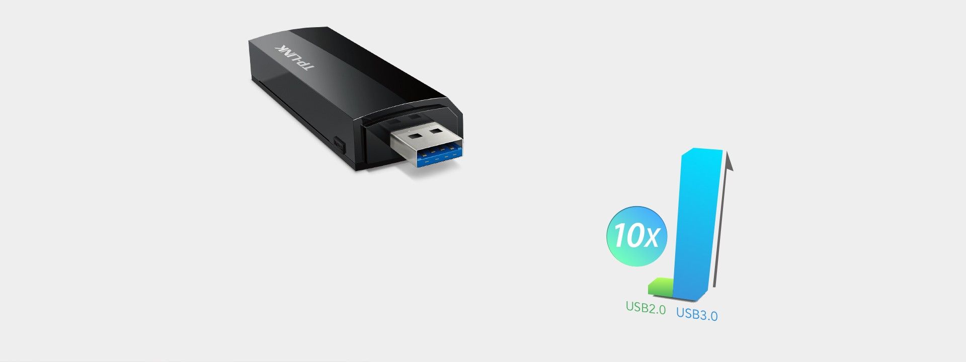 Використовуйте перевага надшвидкої передачі даних по USB 3.0 зі швидкістю 4,8 Гбіт/с, що майже в 10 разів швидше, ніж USB 2.0. Завдяки підтримці USB 3.0 Archer T4U дозволяє в повній мірі реалізувати весь потенціал мереж 802.11ac.