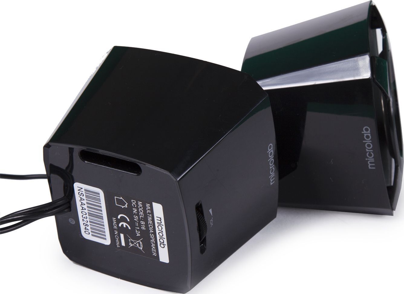 Компактні розміри системи Microlab B-16 дозволяють використовувати систему не тільки на невеликому комп'ютерному столі, але і брати з собою в дорогу для швидкого підключення до ноутбука. Для стійкості і зниження вібрації в нижній частині корпусу є невеликі прогумовані вставки.