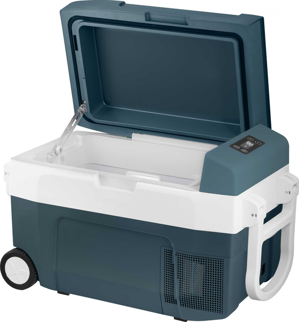 Він пропонує дві окремі камери під однією кришкою. Більша морозильна камера на 27 літрів та менша чилерна камера на 8 літрів. Завдяки потужному компресору для охолодження та ефективній ізоляції він може охолоджувати свій внутрішній простір до температур від 20 до -18 °C, залежно від обраного вами налаштування. Тож навіть заморожені продукти можна безпечно перевозити.