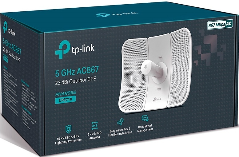 Завдяки 23 дБі спрямованої антени високого підсилення з технологією 2 × 2 MIMO і металевого екранування CPE710 забезпечує відмінну спрямованість променя, зменшує затримки і поглинає шуми. Висока продуктивність у поєднанні зі зручним дизайном роблять точку доступу CPE710 ідеальним бюджетним рішенням для бездротової передачі даних на дальні відстані.
