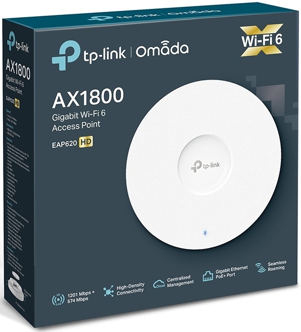 Точки доступу Omada з Wi-Fi 6 (802.11ax) мають новітні технології, такі як 1024‑QAM і символ OFDM зі збільшеною довжиною, що дозволяє підвищити загальну швидкість EAP до 1775 Мбіт/с (1201 Мбіт/с на 5 ГГц і 574 Мбіт/с на 2.4 ГГц). 4 просторових потоки значно збільшують розраховану на багато користувачів пропускну здатність.