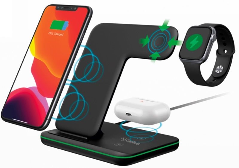 Бездротова зарядка Gelius Pro Wireless Charger 3in1 — технологічна новинка, яка займає мінімум місця на вашому робочому столі та заряджає смартфон, годинник і кейс для навушників одночасно. ЗП має три робочі зони та приємну світлову індикацію. Це не тільки корисний ґаджет, а й стильний аксесуар, який неабияк економить простір: більше немає потреби під'єднувати багато кабелів для живлення всіх ваших пристроїв.
