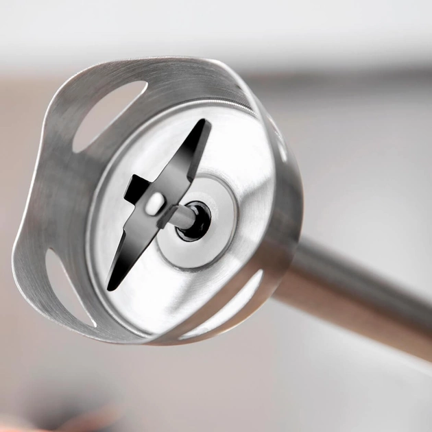 Сучасні рецепти нерідко вимагають подрібнення чи змішування певних продуктів у певних пропорціях. Сучасний занурювальний блендер з лезами з покриттям титану значно полегшить дане завдання і дозволить вам заощадити час. Потужний і тихий двигун розвиває високі обороти для подрібнення навіть найтвердіших продуктів, таких як: горіхи, лід, буряк або морква. А комплектні насадки дозволять не лише подрібнювати, але і змішувати та збивати інгредієнти для ваших улюблених страв.