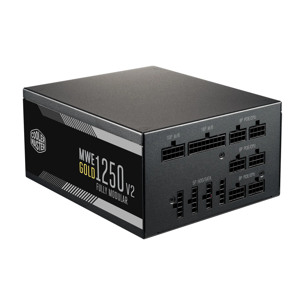 Блок живлення Cooler Master MWE Gold 1250 V2 ATX 3.0 — високопродуктивне рішення з повною модульністю кабелів, сертифікацією 80 PLUS Gold і потужністю 1250 Вт. Відповідає стандарту ATX 3.0, що гарантує підтримку сучасних компонентів, включно з відеокартами з великим енергоспоживанням. Оснащено тихим вентилятором діаметром 140 мм із підшипником FDB і режимом 0 RPM при низькому навантаженні. Повністю модульна система кабелів дозволяє оптимізувати кабельний менеджмент і поліпшити вентиляцію системного блоку. Технічні характеристики: вхідна напруга 100-240 В, частота 50-60 Гц; габарити блоку — 180 × 150 × 86 мм. Передбачено захисти від перевантаження, короткого замикання, перенапруги та інших аварійних ситуацій. Ідеально підходить для ігрових або робочих систем високого класу.