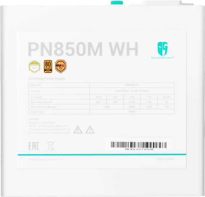 DeepCool PN850M WH - це новий блок живлення, який відповідає новітнім стандартам Intel ATX 3.1 і PCIe 5.1. Завдяки виділеним портам 12V-2x6, 5 EPS/PCIe, PN850M WH забезпечує стабільне живлення для широкого спектра сучасних потужних компонентів.