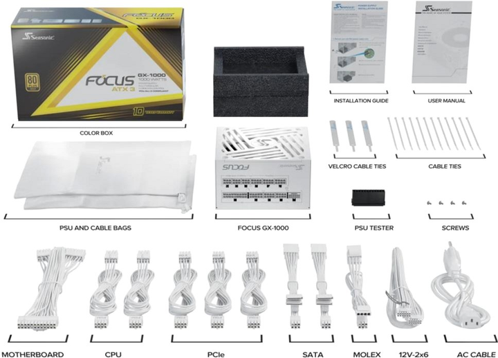 Блок живлення Seasonic FOCUS GX White ATX 3.1 1000W (FOCUS-GX-1000-ATX31-WH)