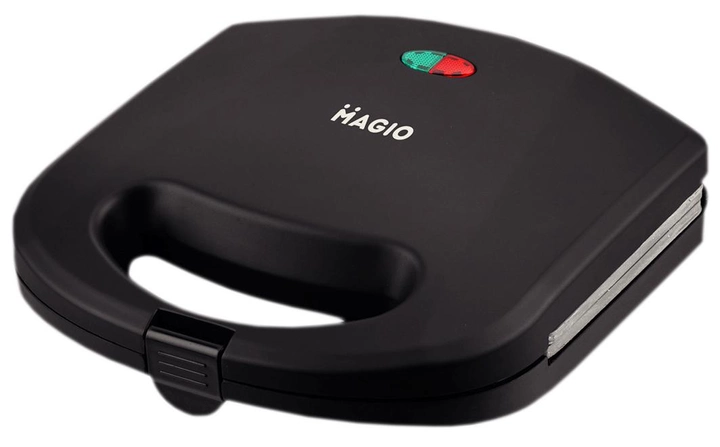 Нагрівальний елемент потужністю в 780 Вт забезпечить швидке та рівномірне нагрівання двох робочих поверхонь із керамічним покриттям. Бутербродниці Magio дуже зручні в користуванні, сендвічі не пригорають й легко виймаються. Завдяки компактним розмірам і фіксатору, бутербродницю зручно зберігати. На кришці є світлові індикатори живлення й готовності до роботи, що полегшує контролювання процесу приготування.