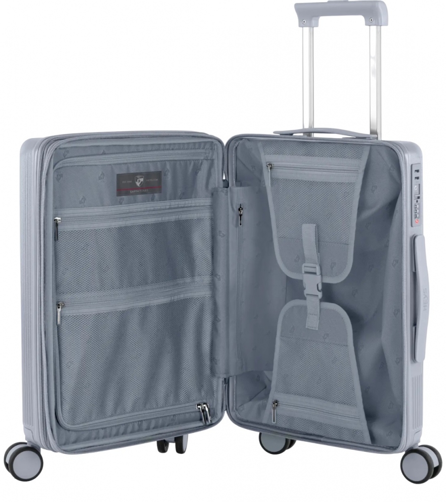 Внутрішня підкладка валізи виготовлена із сатину, ремені для фіксації речей містять окремі кишені для розміщення різних дрібниць, окрему кишеню для розміщення цінностей та/або документів, основна перегородка має дві сітчасті кишені на блискавці. Розширювальний клапан дозволяє за необхідності збільшити об'єм, вбудований кодовий замок із функією TSA, верхня та бічна ручки для зручного транспортування. Все це робить валізу більш функціональною та вирізняє її серед конкурентів. Валіза обладнана фірмовим кодовим замком з функцією митного огляду TSA (Transportation Security Administration – Адміністрація з безпеки на транспорті).