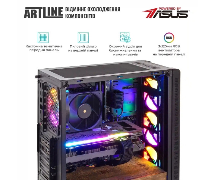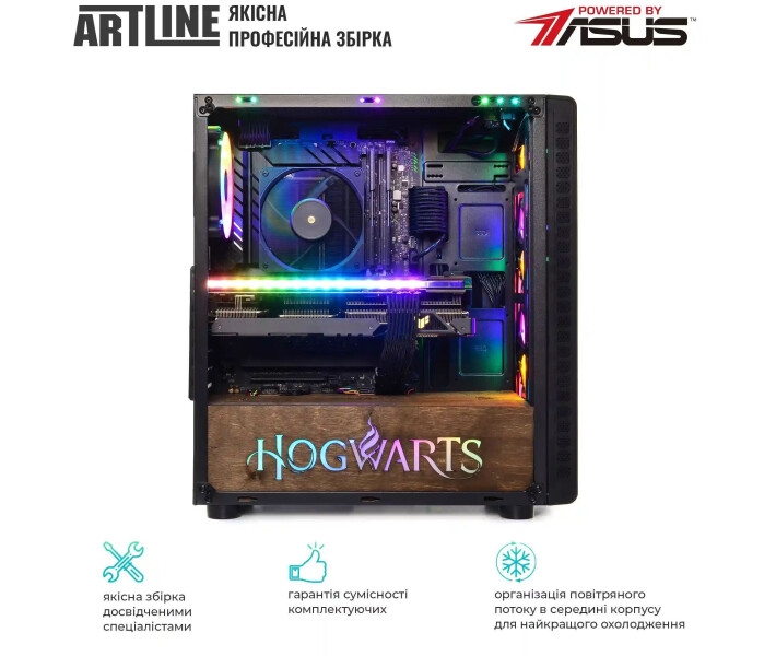 Ігрові персональні комп'ютери ARTLINE Gaming створені спеціально для тих, хто хоче особисто створити на їхній основі справжній центр домашніх розваг. Робота з графічними та робочими програмами, комфортний перегляд відео високої чіткості, запуск сучасних ігор – це та багато іншого стане доступно з ПК ARTLINE Gaming. ПК лінійки HGWRTS створювалися спеціально для шанувальників чарівного світу Гарі Поттера. Тут і сова, що летить, і силует з паличкою в мантії на тлі замку під покровом безлистих гілок і золотий елемент маховика часу – безліч відомих елементів, які створюють особливу атмосферу. Підбір комплектуючих проводився особливо ретельно: аналізувалась їхня продуктивність, ціна та найголовніше – вміння чітко та злагоджено працювати як одне ціле, без збоїв. Велика різноманітність конфігурацій модельного ряду ARTLINE Gaming HGWRTS дозволить вам обрати відповідний варіант. Ігровий ARTLINE Gaming HGWRTSv40 побудований на платформі материнської плати на чіпсеті AMD B450. Вона оптимізована для роботи з процесорами Ryzen 2, 3, 4, 5 покоління. Стабільність та швидкість ігрового процесу гарантує процесор AMD Ryzen 5 5600. Шестиядерний кристал може похвалитися 12 потоками обробки, базовою частотою 3.5 ГГц з розгоном до 4.4 ГГц. Сучасні технології в його основі неабияк підвищили продуктивність в іграх, а в поєднанні з можливостями розгону ядер дозволять даному процесору не втрачати актуальність довгі роки. В якості системи охолодження було обрано баштовий кулер з підсвічуванням. Відеокарта Nvidia GeForce RTX 3060 12 ГБ на базі високопродуктивної архітектури NVIDIA Ampere забезпечує чудову продуктивність в іграх з роздільною здатністю 1080p. Технології трасування променів і згладжування з алгоритмами глибокого навчання справляють враження в іграх нового покоління з високою частотою кадрів. Оперативна пам'ять покоління DDR4 на 32 ГБ з ефективною робочою частотою 3200 МГц забезпечить швидку та стабільну роботу ПК. Високу швидкість відгуку системи та програм гарантує встановлений M.2 NVMe SSD накопичувач ємністю 480 ГБ. Для зберігання великої кількості даних передбачено жорсткий диск на 1 ТБ. Всі комплектуючі ми розмістили у кастомному корпусі QUBE STORM із блоком живлення потужністю 600 Вт. Декілька RGB вентиляторів створять умови для хорошого повітрообміну всередині кейсу, що позитивно позначиться на температурному режимі всіх компонентів. Купуючи комп'ютер нашої компанії, Ви отримуєте не просто готовий виріб у вигляді набору комплектуючих – Ви отримуєте професійно зібраного, надійного та вірного помічника на довгі роки, а також якісне технічне обслуговування безпосередньо від виробника протягом усього терміну експлуатації.