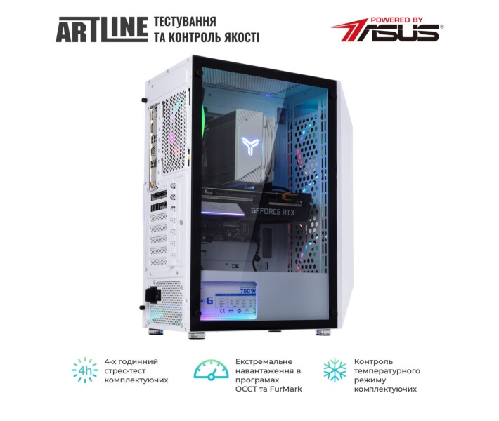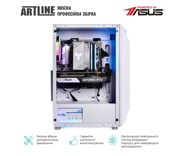 Усі комплектуючі ARTLINE Gaming X55WHITEv39Win розміщені у ефектному корпусі QUBE SNOW з блоком живлення на 700 Вт 80+ Silver та комплектом RGB.